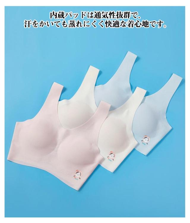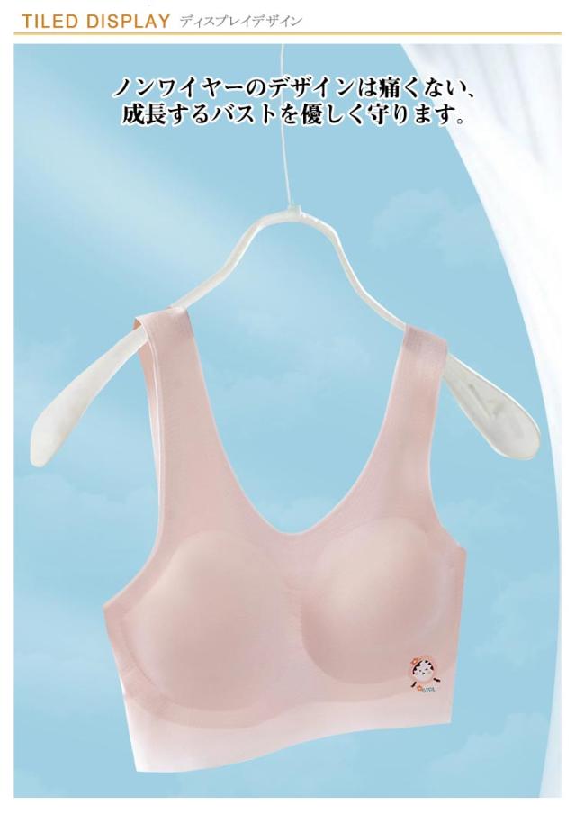 | 日々成長していく女の子の身体に合わせた学生ためのブラジャー ノンワイヤーのデザインは痛くない、成長するバストを優しく守ります。 内蔵パッドは通気性抜群で、汗をかいても蒸れにくく快適な着心地です。 涼感のあるストレッチ性抜群の素材を採用しており、締め付け感がなくストレスフリー♪ さわやかな色合い、飾りがないシンプルな無地の肌着なので、アウターに響かないですっきりと着こなすことができます。 | |