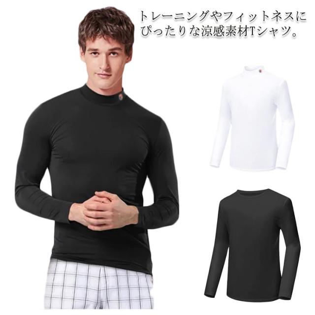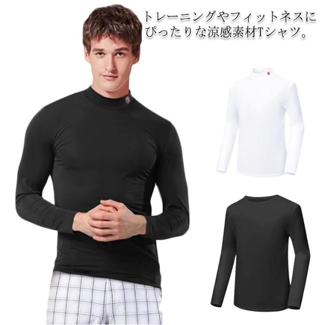 ゴルフ tシャツ スポーツウェア Tシャツ メンズ トップス ラッシュガード 長袖 薄手 ストレッチ ひんやり 冷感素材 インナーシャツ クルーネック ハイネック 速乾 吸水 運動 熱中症対策 テニス サッカー 体操 トレーニング 送料無料