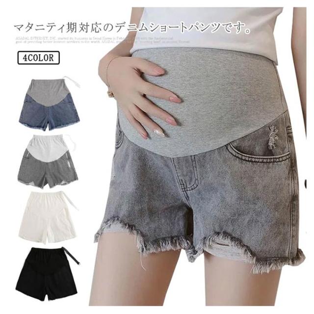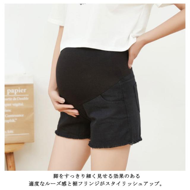 マタニティ パンツ デニム ショートパンツ ショーパン デニム 短パン 半ズボン フリンジ ジーンズ ボトムス マタニティ服 デニムパンツ 産前産後 大きいサイズ 春夏 パンツ マタニティウェア 妊婦服 送料無料