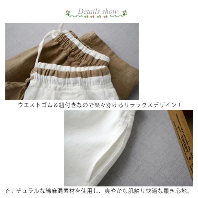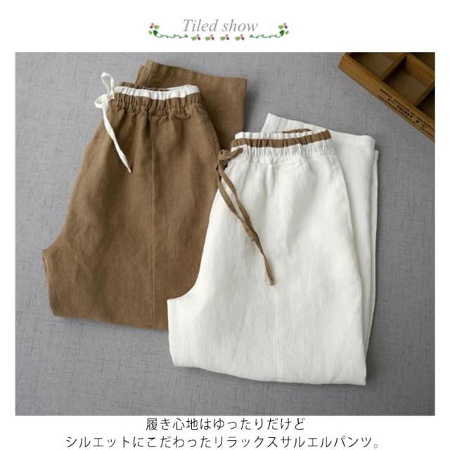 送料無料 サルエルパンツ リネンパンツ 九分丈 レディース 綿麻 リネン サルエルパンツ イージーパンツ テーパードパンツ ロングパンツ 9分丈 サルエル パンツ ボトムス ナチュラル 上うsとゴム 紐付き