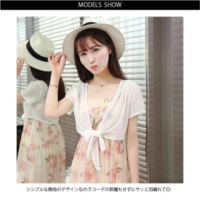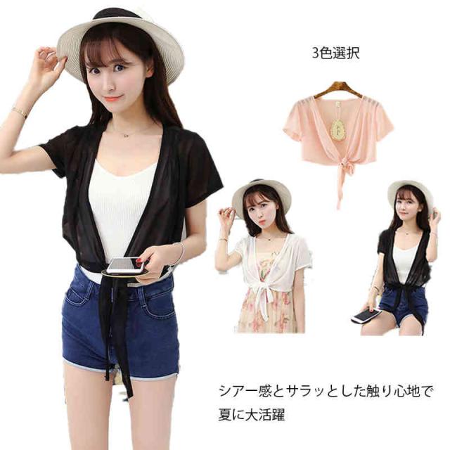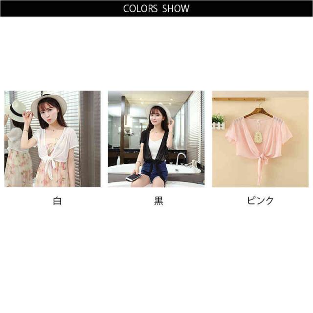 カーディガン レディース サマーカーディガン ボレロ 半袖 シフォン ショート丈 短め ショート丈 薄手 シンプル 無地 UVカットシアー 冷え防止 冷房 羽織 透け感 春 夏 秋 リボン 薄手 シンプル 無地 エアコン対策 冷房対策 カジュアル