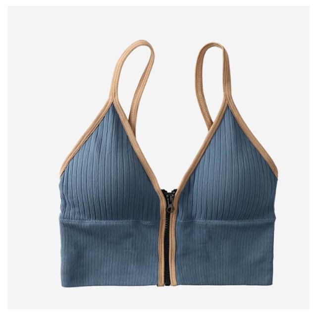 フロントジップ スポーツブラ 揺れない レディース トレーニングウェア キャミソール ブラジャー 下着 スポーツ ヨガ ジム ブラ 女性 リブ編みスポーツブラ 蒸れなく パッド取り外し可能 3Dカップ 抗菌 送料無料