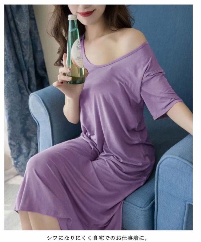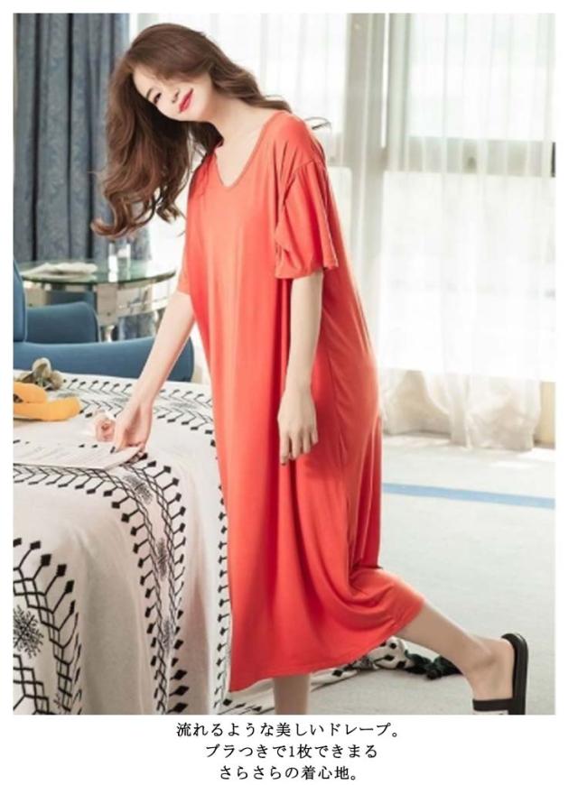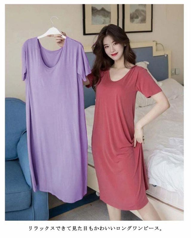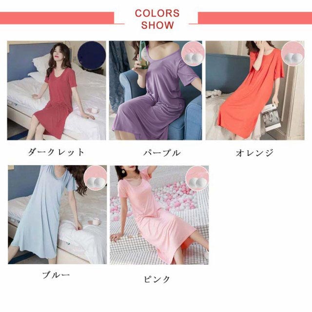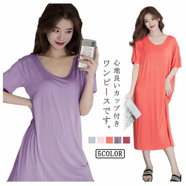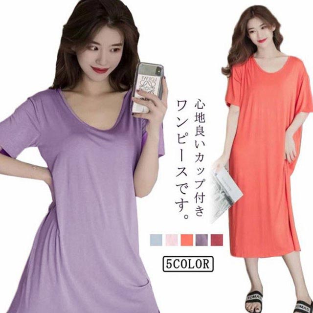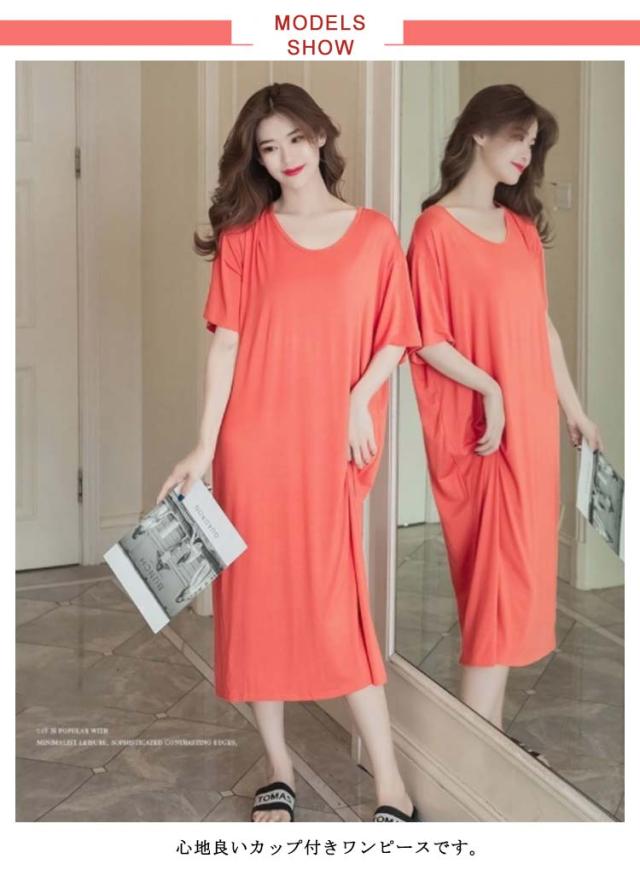 ルームウェア 部屋着 ワンピース ブラつき カップ付き ロング おうち パジャマ 大きいサイズ 無地 部屋着 体型カバー シンプル インナー ストレッチ マタニティ ナイトウエア