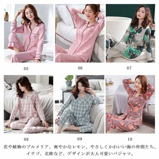 | 綿100%のレディースの長袖パジャマ上下セット。 前開きボタンタイプで着やすい。 花や植物のプルメリア、爽やかなレモン、やさしくかわいい海の仲間たち、イチゴ、北欧など、デザインが大人可愛いパジャマ。 綿100%ダブルガーゼでふんわりしたやさしい肌触り。 ウエストはゴム仕様で着脱しやすい。 薄地の長袖なので、春や秋などはもちろん、夏場のエアコンが効いたお部屋などでもお使いいただけます。 | |
