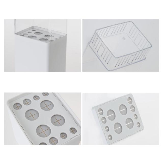 | たっぷり12本収納できる大容量メイクブラシ収納ケース 大きさの違う差し込み穴で、サイズに合わせてピッタリ収納できます。 穴部分は柔らかなシリコンゴムでメイクブラシを傷つけず保管できます。 距離をあけて保管することで細菌の?殖を抑えしっかりガード。 通気口付きで、洗ったブラシを収納して乾かすこともできます。 カバー付きで水濡れを防ぎ、ホコリから守ります。 旅行やお出かけにも持ち運べる便利なアイテムです。 | |