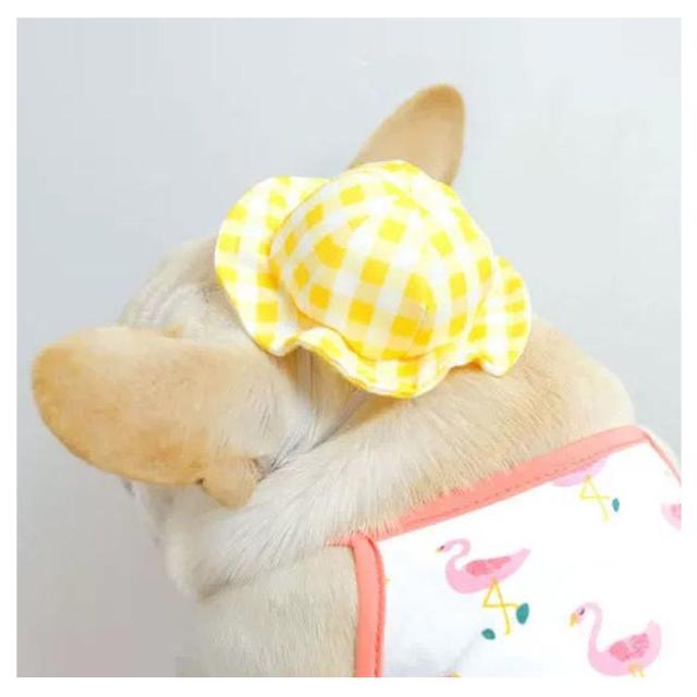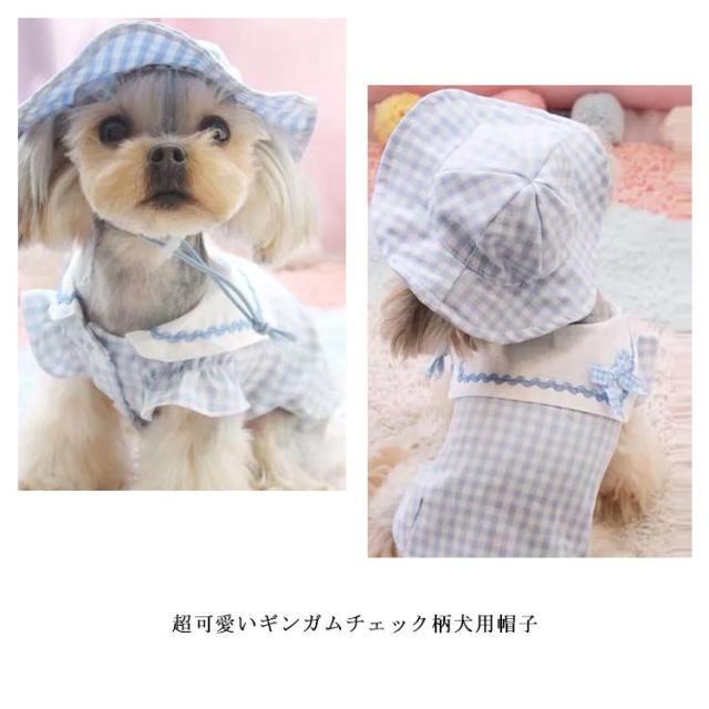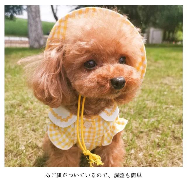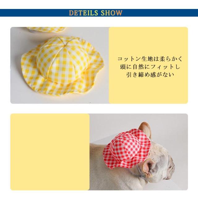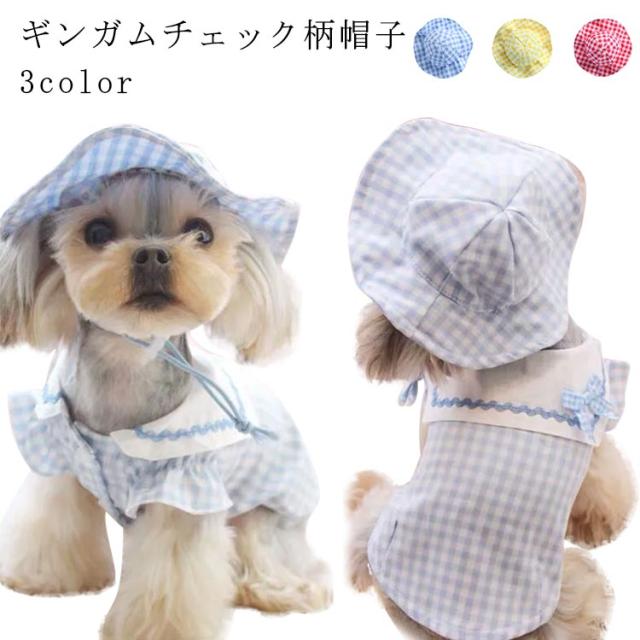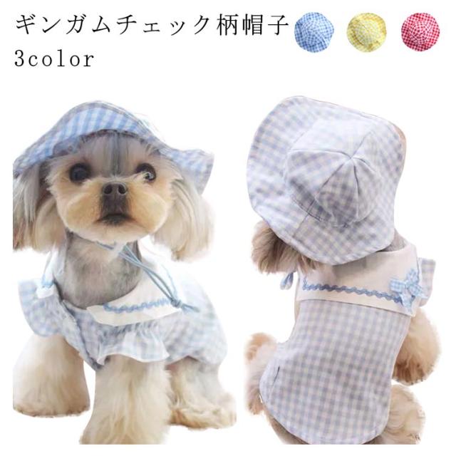 送料無料 ペット用品 犬用 帽子 ギンガムチェック ペットウエア チェック柄 可愛い お散歩 お出かけ ピンク イエロー キャット 犬帽子 猫帽子 ペット用帽子 アクセサリー 帽子のみ