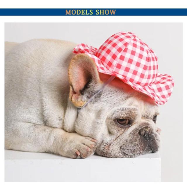 | 超可愛いギンガムチェック柄犬用帽子。 コットン生地は柔らかく、頭に自然にフィットし、引き締め感がない。 お出かけの日よけや熱中症対策に。 あご紐がついているので、調整も簡単。 | |