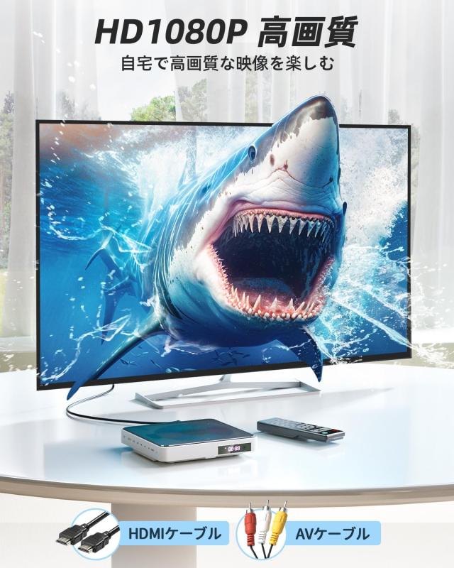 このDVDプレーヤーはHDMI出力に対応しており、TVに接続して高解像度化が可能です。