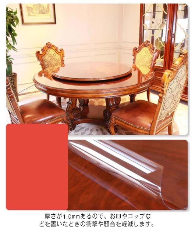 テーブルマット 円形 透明 テーブルクロス ビニール PVC 食卓 デスクマット ダイニングテーブルマット 厚1.0mm 汚れ防止 傷防止 キズ防止 ビニールクロス 撥水 防水 撥油 耐熱 テーブルクロス 透明 クリア ビニールマット 勉強机 学習机 オフィスデスク 家庭用 オフィス用