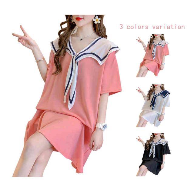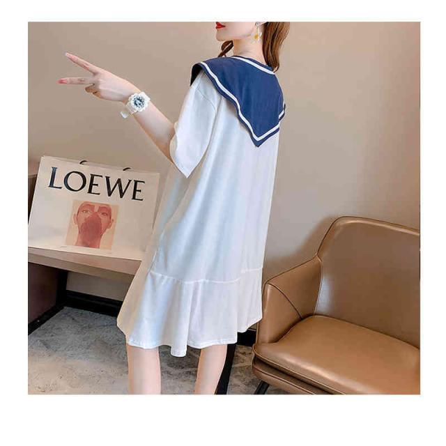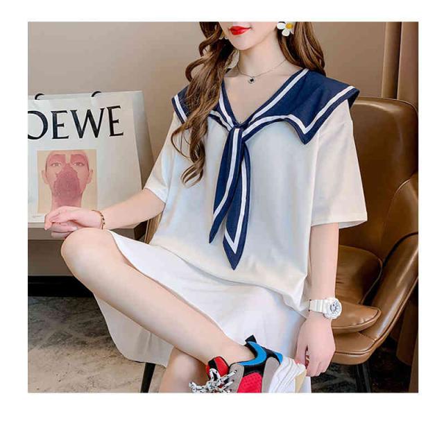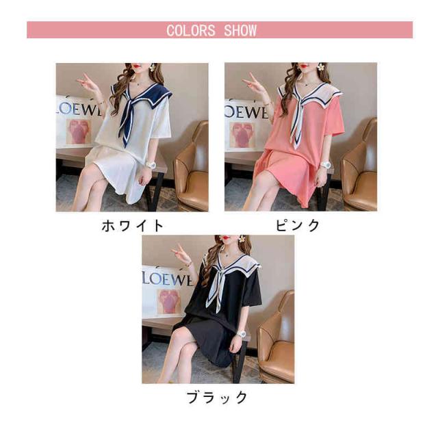 シャツワンピース レディース 夏用 半袖 ロングワンピース 海軍ワンピース イベント 可愛い 女性 コットン ゆったり ミディアム丈 無地 シンプル カジュアル おしゃれ 送料無料