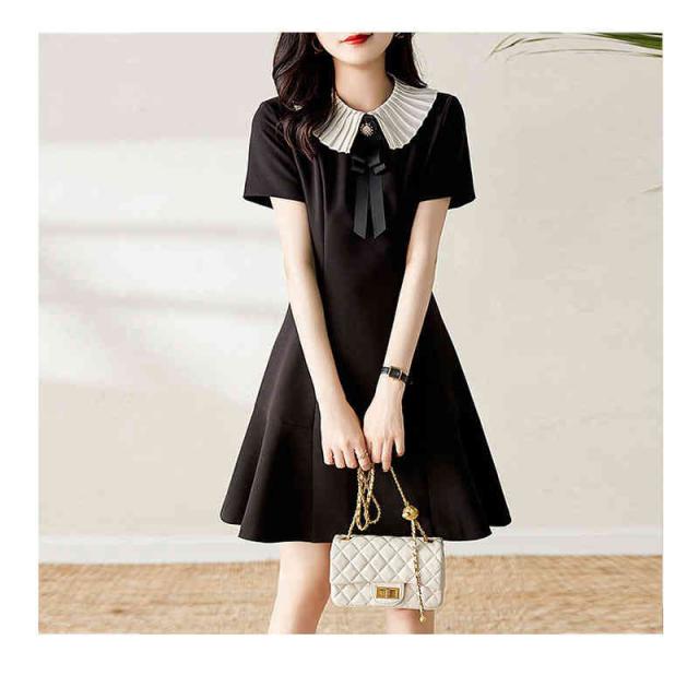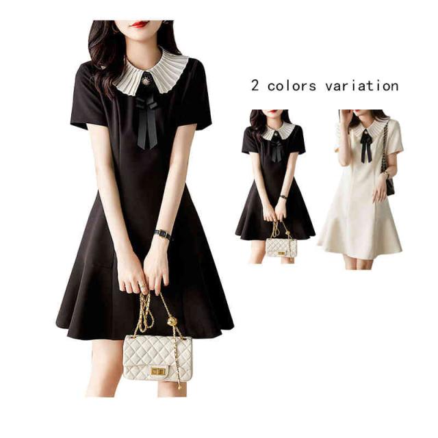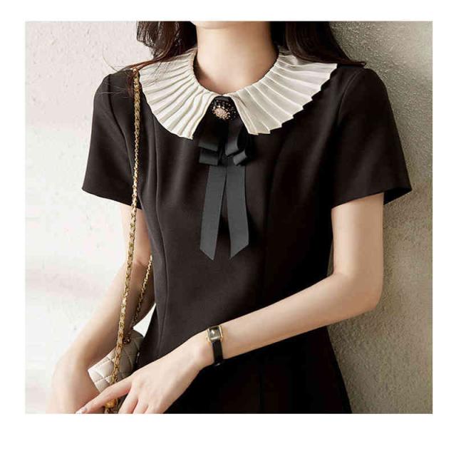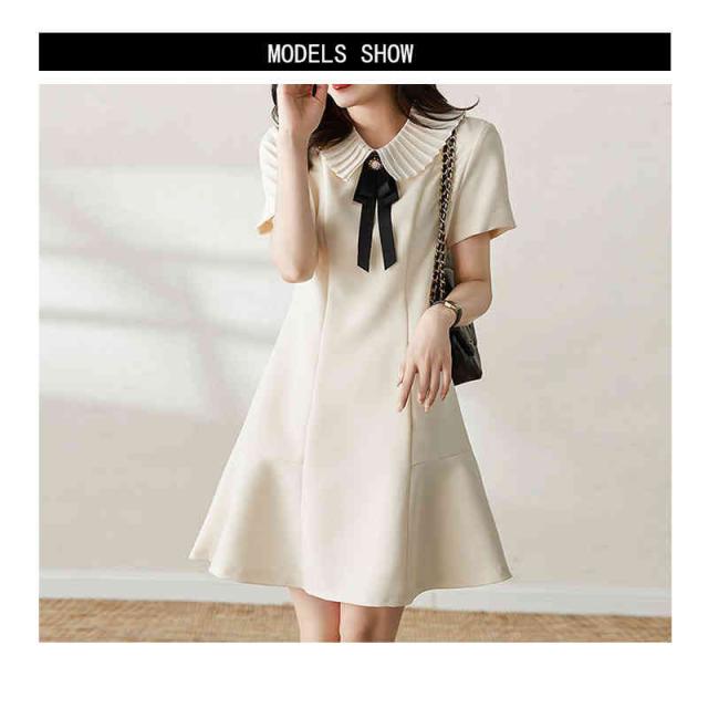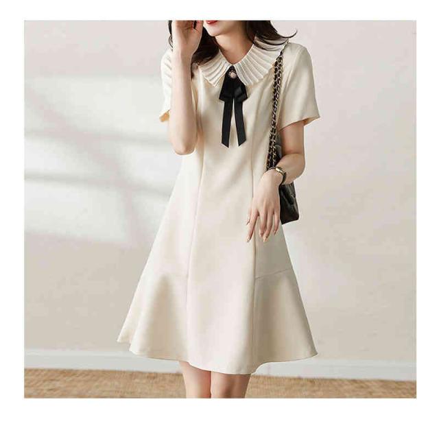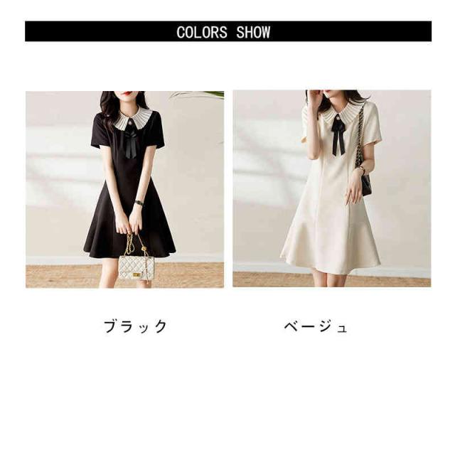 フレアワンピース レディース 夏用 マーメイドワンピース 折襟 リボンワンピース ロングワンピース 半袖 Aライン 切り替え 無地 シンプル カジュアル 出勤 フェミニン フォーマルワンピース 送料無料