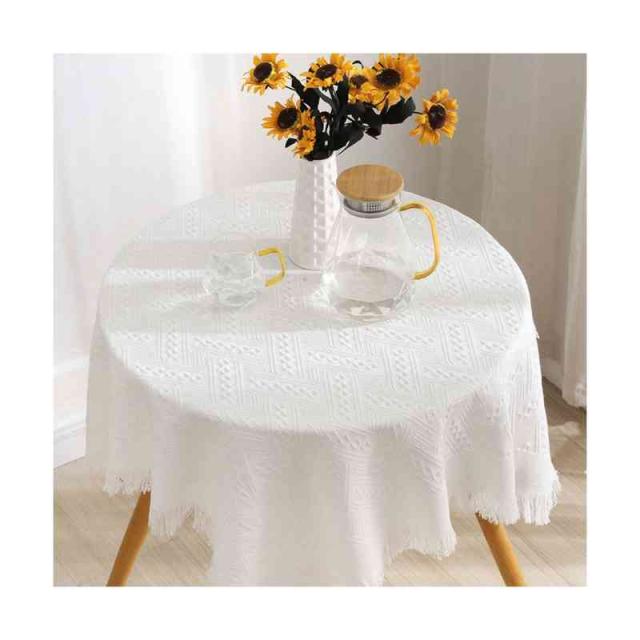 テーブルクロス 円形 食卓カバー 茶卓 洗える テーブルマット ダストカバー おしゃれ 北欧 レース ジャガード シンプル エレガント 無地 汚れ防止 滑り止め 防塵 デスクマット 高級感 ホワイト 新生活