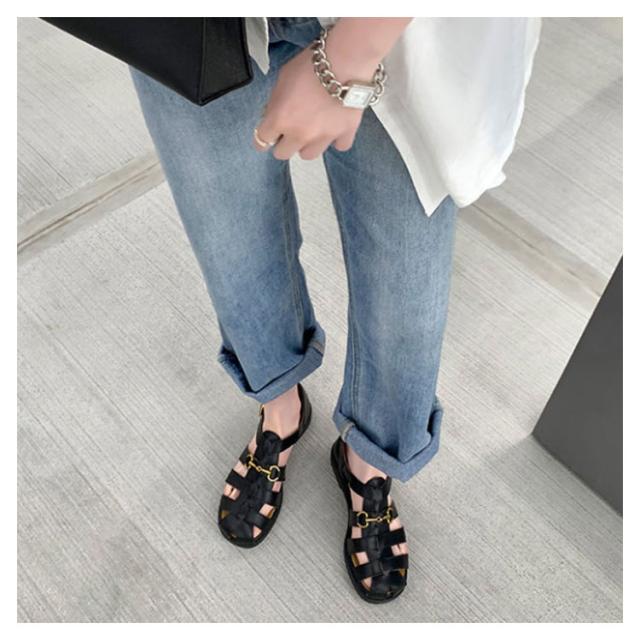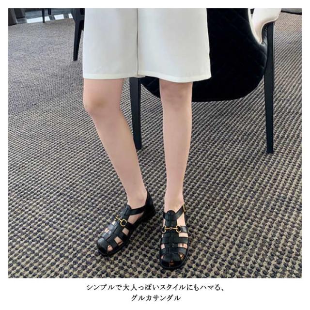 サンダル グルカサンダル レディース ストラップ つっかけ ぺたんこ 歩きやすい 大きいサイズ ウェッジソール ベルトサンダル スクエアトゥ シューズ フラットシューズ 編み