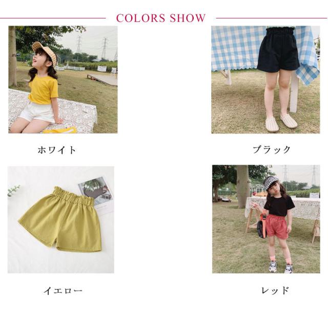ショートパンツ 子供服 キッズ ハーフパンツ 3分丈パンツ 短パン 半ズボン ショーパン ボトムス 夏服 ウエストゴム 女の子 小学生 中学生 ブラック ホワイト ブラック イエロー レッド 110 120 130 140 150 160