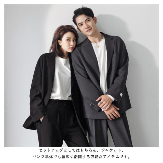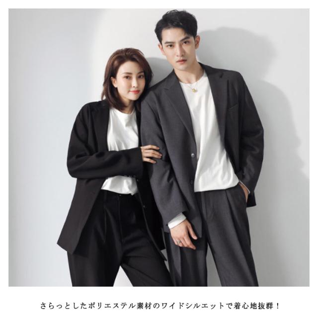 | 上品な大人カジュアルコーデにぴったりのセットアップスーツです。 さらっとしたポリエステル素材のワイドシルエットで着心地抜群! ジャケットはゆったりとしたトレンドのビッグシルエットで羽織るだけで旬なスタイルが完成。 パンツはジャケットのシルエットに合わせて、腰周りはタックを入れることでゆとりを持たせたリラックススタイル。 セットアップとしてはもちろん、ジャケット、パンツ単体でも幅広く活躍する万能なアイテムです。 キレイ目スタイル・カジュアルスタイルなど様々なスタイルに活用できます。 ユニセックスdesignなので夫婦やベアルック揃いに大正解。 | |
