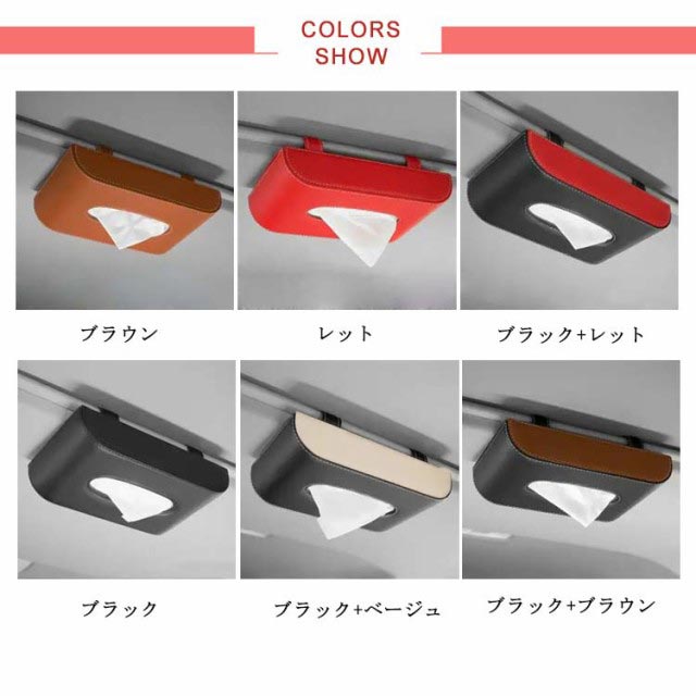 | サンバイザーに挟むだけで簡単に取り付けできるティッシュケースが新登場! 厚さを抑えた作りになっているので視界の妨げになりません◎ 吊り下げて省スペースで、車内のような限られたスペースで大活躍 素材はしっとりとした質感の高品質PUレザー。 | |