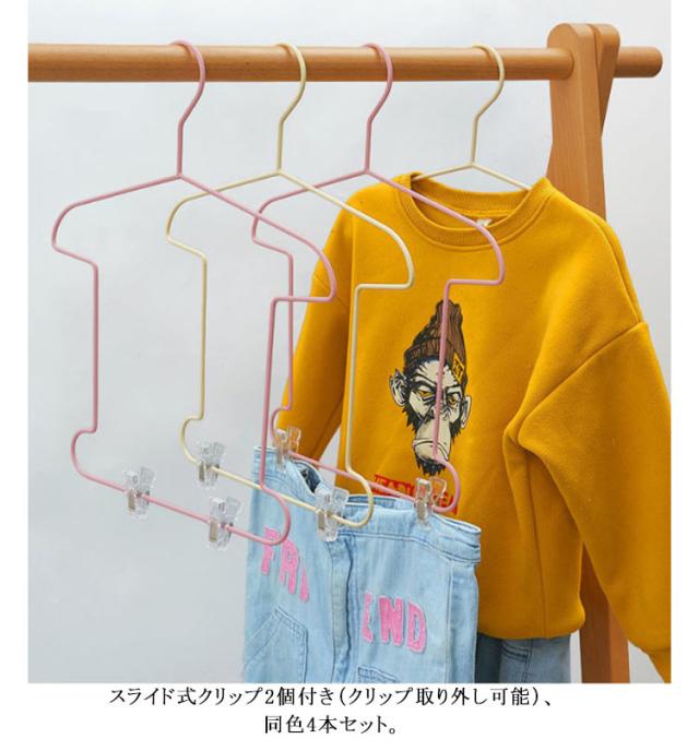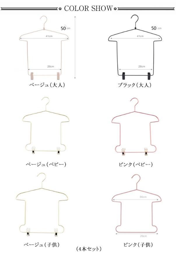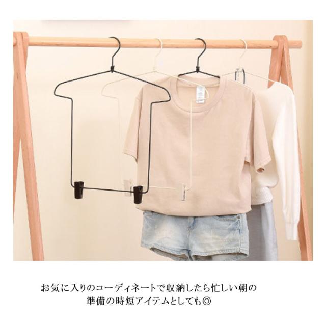 ハンガー 衣類ハンガー コーディネートハンガー 4本セット トップス ボトムス クリップ付きハンガー 省スペース 便利 スライド式クリップ付き コーディネート用ハンガー Tシャツ型 大人 子供用 ベージュ ブラック ピンク
