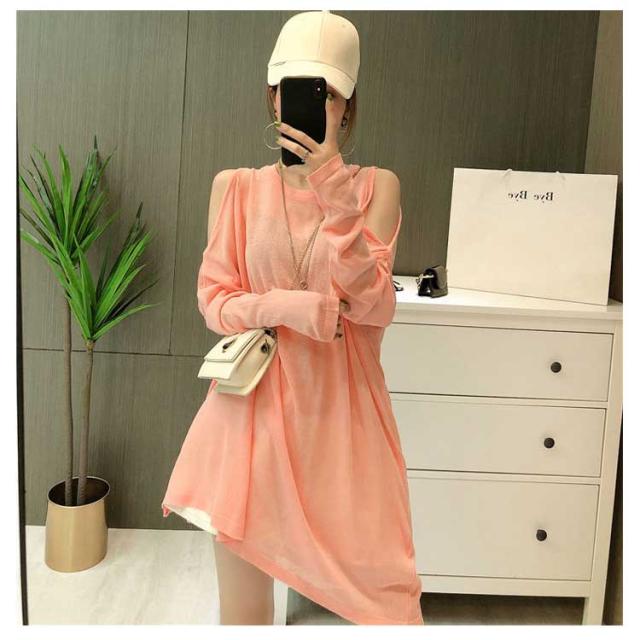 肩出しトップス サマーニット Tシャツ カットソー レディース ニットトップス 接触冷感 送料無料 UVカット 薄手 春夏トップス プルオーバー カジュアル ストリート 大きいサイズ 原宿系 ダンス衣装