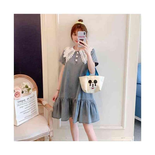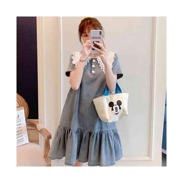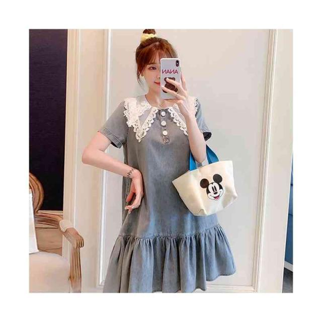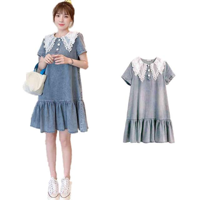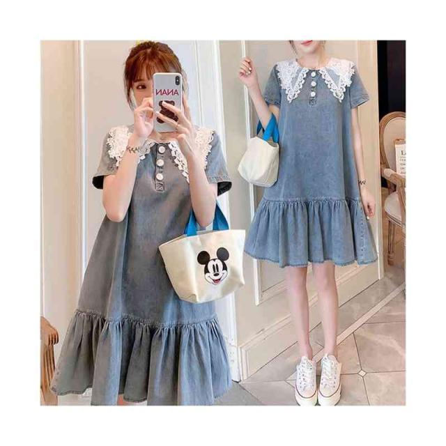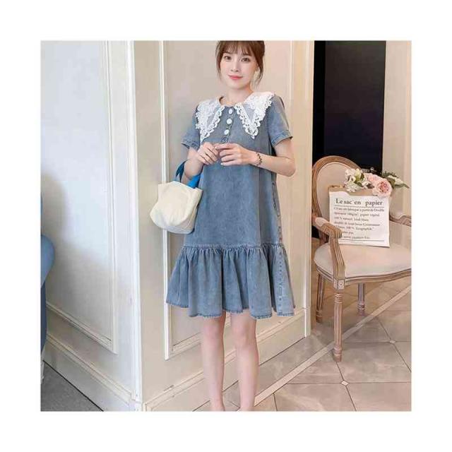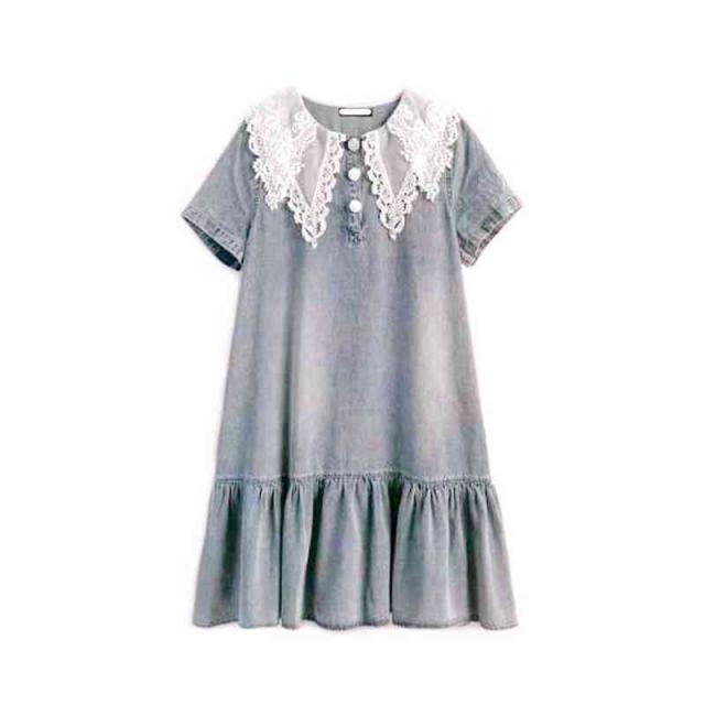 レースワンピース レディース ゆったり 夏用 大きサイズ レース付き 折襟 シャツワンピ フリルワンピース コットン ワンピース 半袖 ミディアム丈 Aライン 無地 シンプル カジュアル おしゃれ フェミニン 送料無料