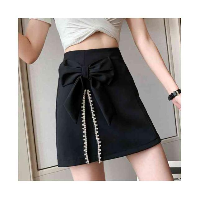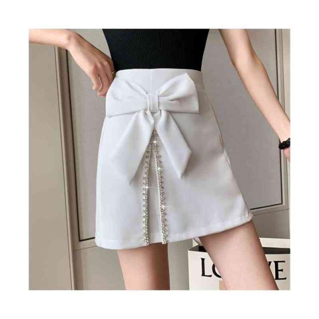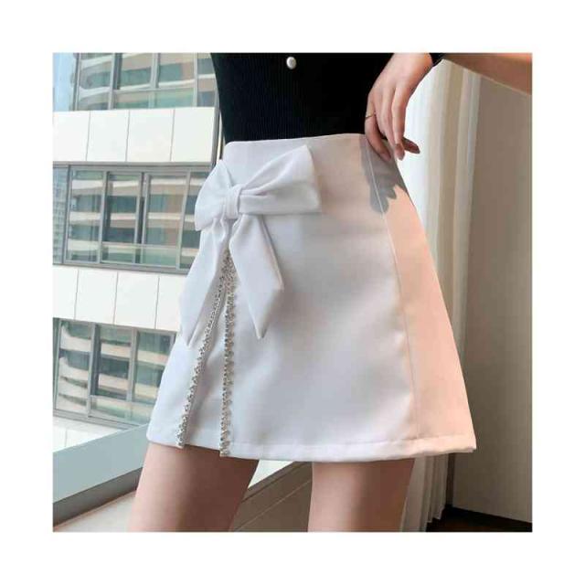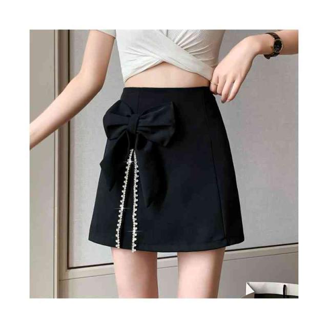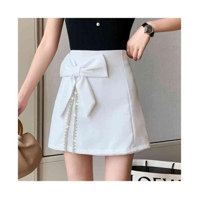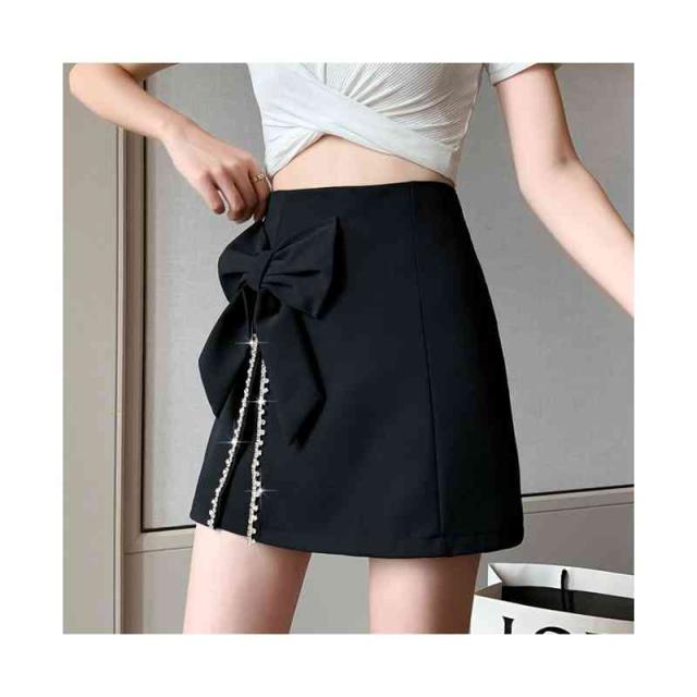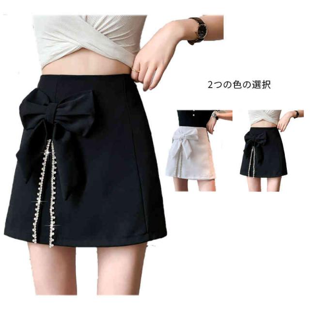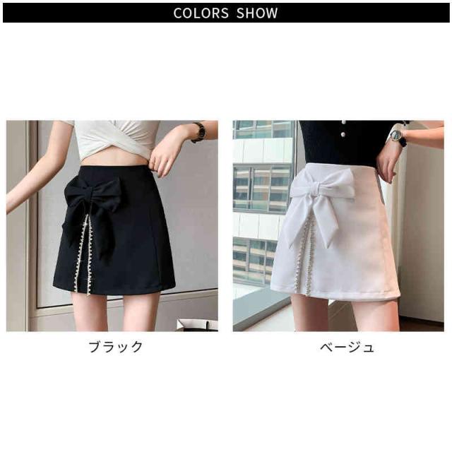 ミニスカート レディース リボンスカート スリット入り ハイウエスト Aライン ボトムス ミニ スカート タイトスカート スカート カジュアル インナーパンツ付き ペンシルスカート 無地 シンプル ダンス衣装 カジュアル おしゃれ 送料無料