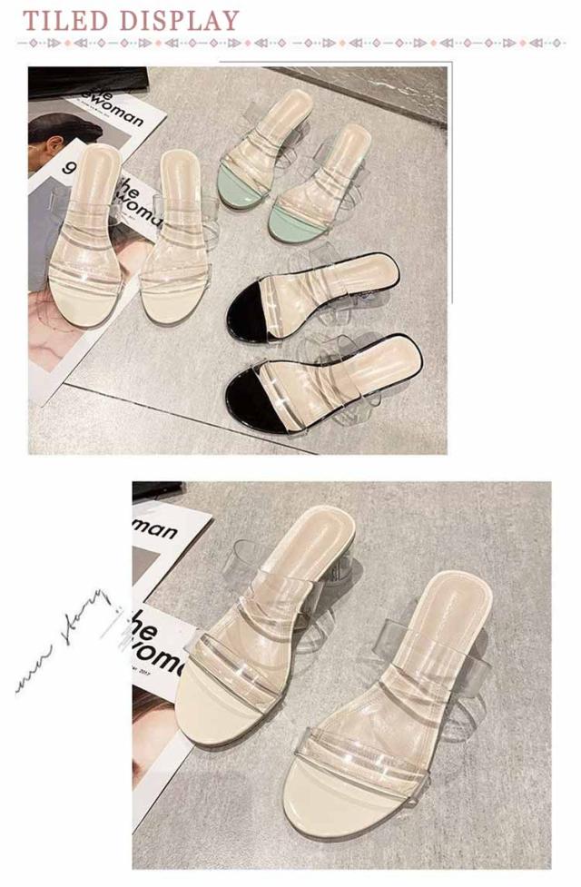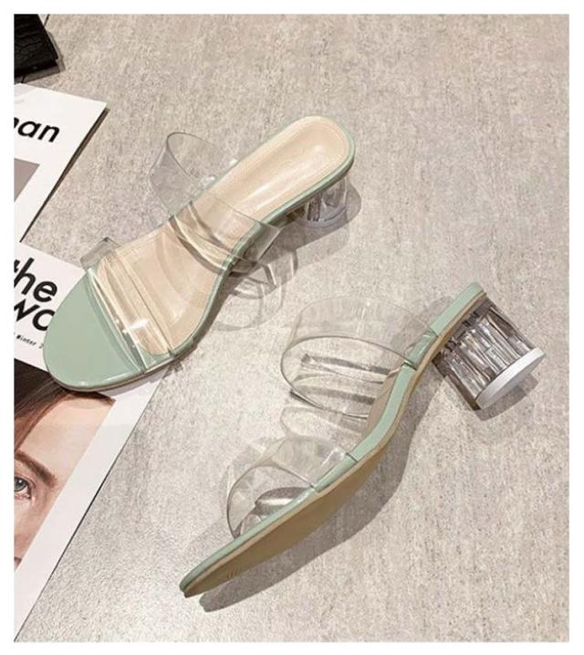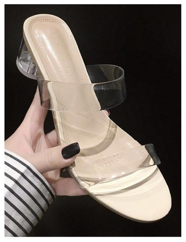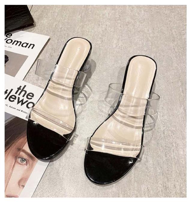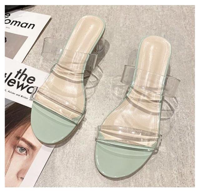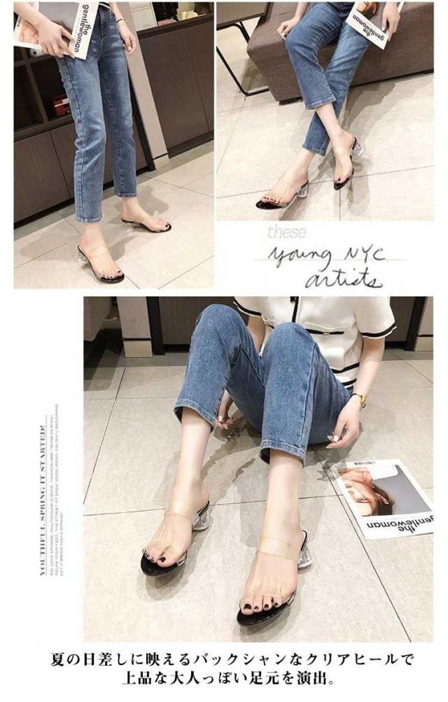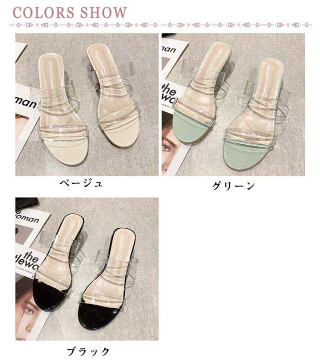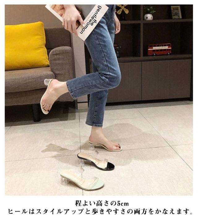 サンダル レディース ミュール クリアヒール 5cm 太ヒール 透明 ストラップ 痛くない 歩きやすい オフィス 通勤 キレイめ おしゃれ つっかけ スリッパ 旅行 美脚 シューズ 春夏 靴 ブラック 黒 ベージュ グリーン 大きいサイズ