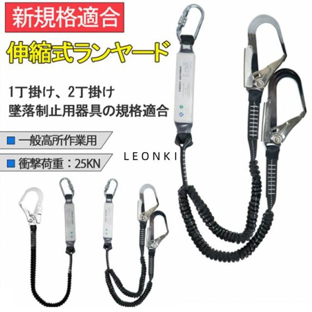 【新規格適合】フルハーネス用ランヤード 一丁掛け 伸縮式ランヤード フルハーネスシートベルト用 シングル 安全ベルト プ ランヤード 補助用 高所 安全作業