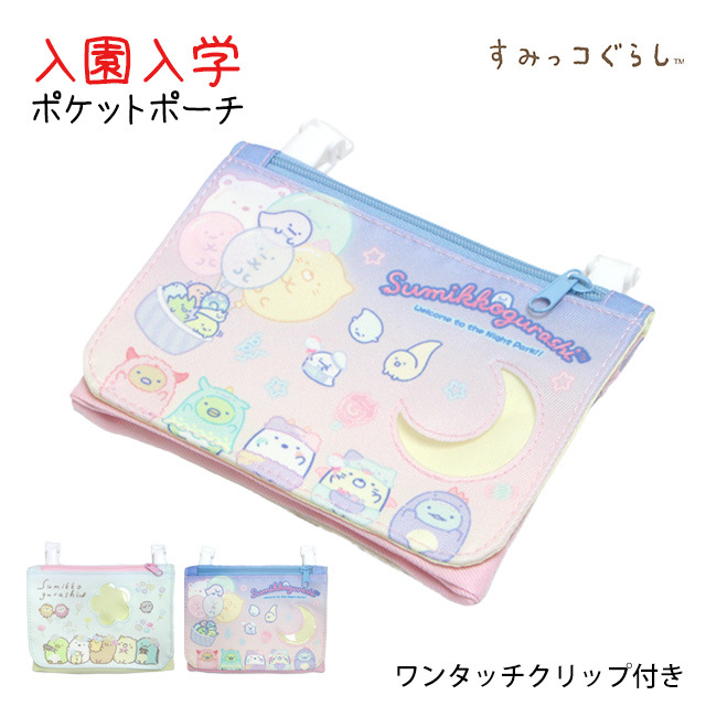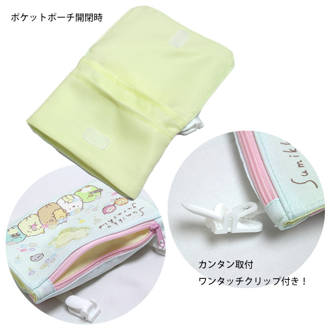 | ポケットポーチ 女の子 すみっコぐらし テッシュポーチ 入学準備 キャラクター 窓付きフラップポーチ 小物入れ クリップ 外付けポケット |
