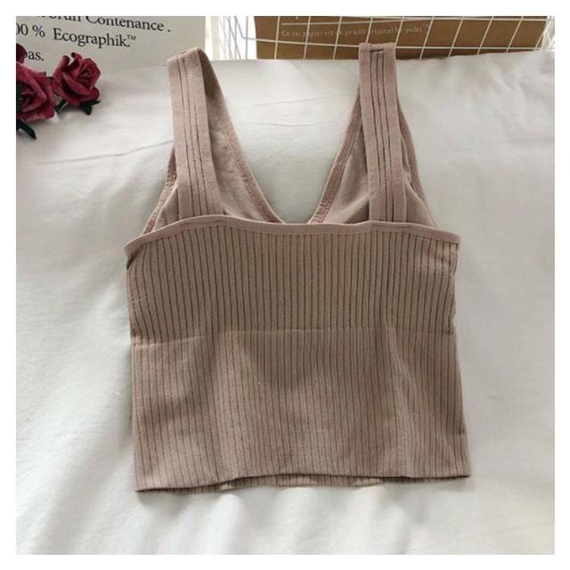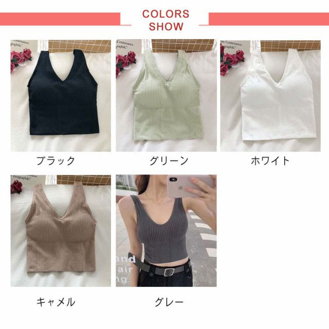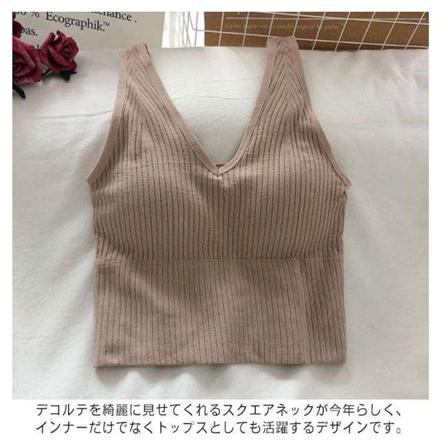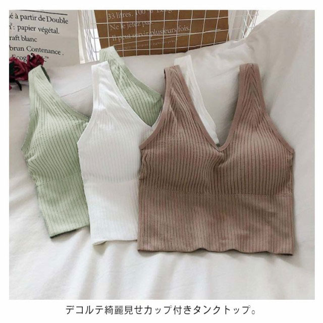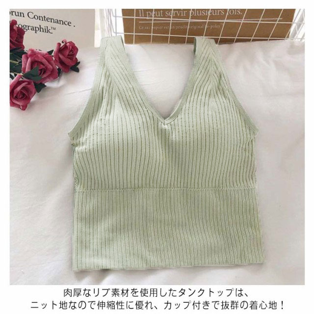 タンクトップ カップ付き ノースリーブ レディース ファッション 春 夏 秋 インナー キャミソール リブタンクトップ 深Vネック リブタンク プチプラ