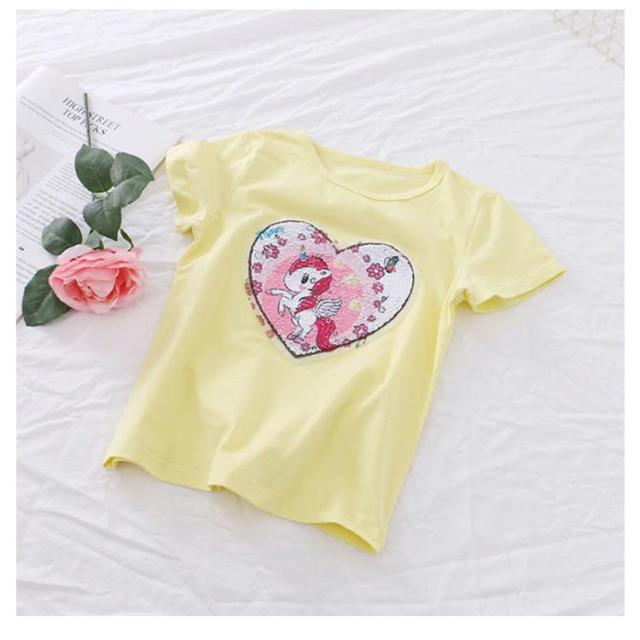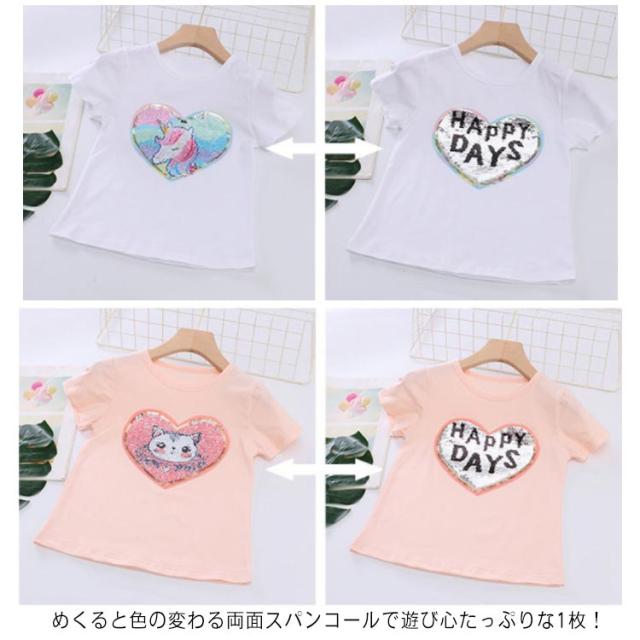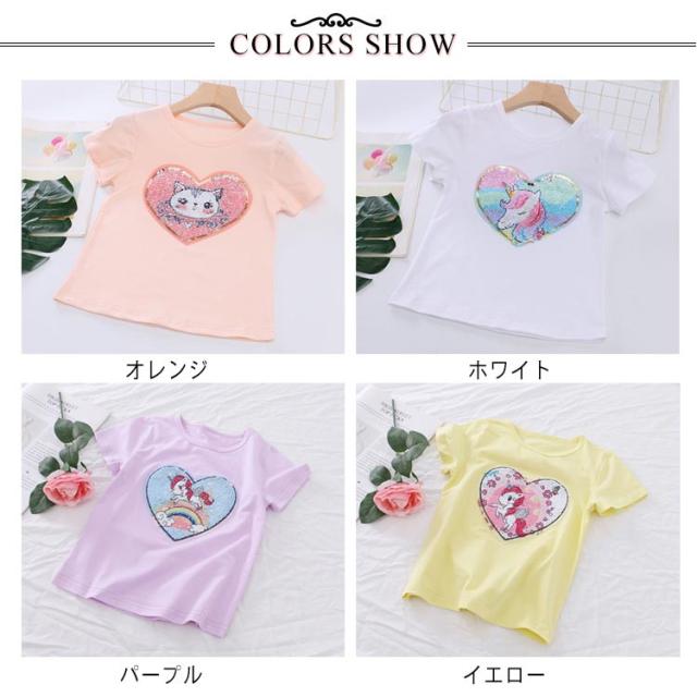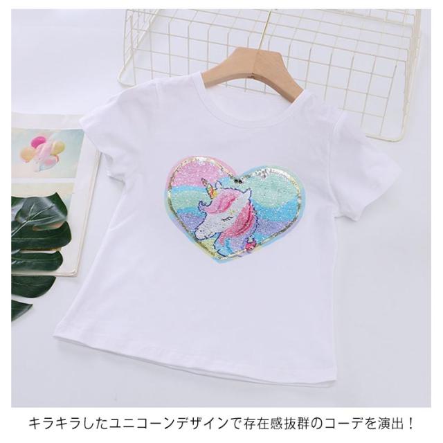 【送料無料】Tシャツ 半袖 変色スパンコール ダンス衣装 夏 丸首 子供服 キッズ 90 100 110 120 130 140 ユニコーン 演出服 可愛い 女の子 ヒップホップ Uネック マルチカラー 虹色 おしゃれ