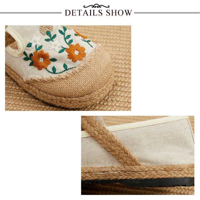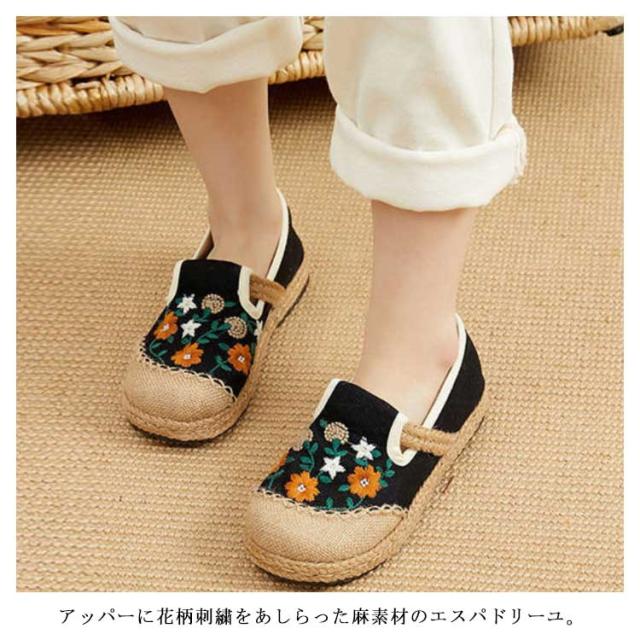 スリッポン エスパドリーユ 花柄 刺繍 レディース 麻 リネン ジュート シューズ 靴 春夏 涼しげ 涼しい くつ 軽量 通気性抜群 ナチュラル スニーカー 歩きやすい ペタンコ チャイナ風シューズ かわいい おしゃれ プレゼント 女性 誕生日