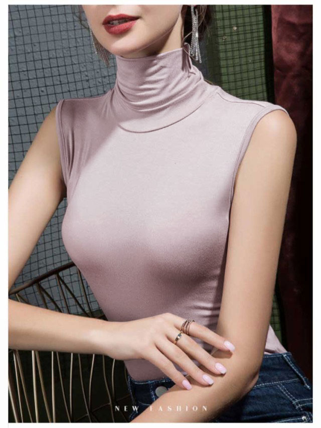 ハイネック ノースリーブ タートルネック 春夏 薄手 ボトルネック モダール ノースリ トップス UVカット カットソー Tシャツ ストレッチ モダール 秋冬インナー スポーツウエア タンクトップ オールシーズン 送料無料