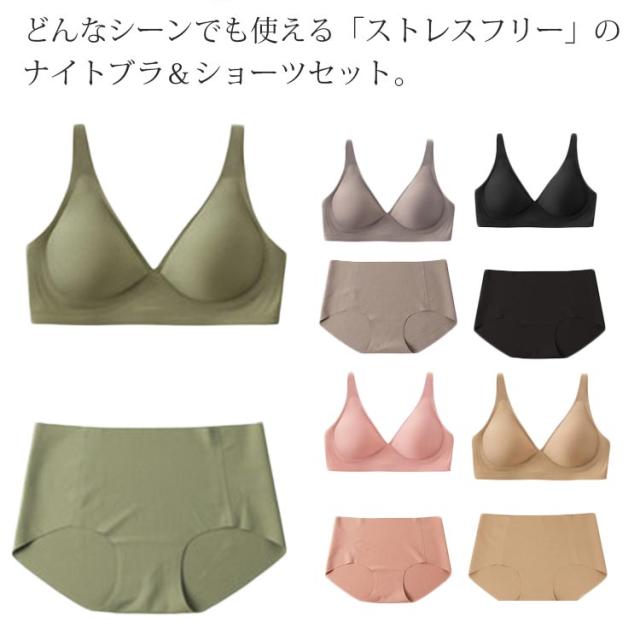 | どんなシーンでも使える「ストレスフリー」のナイトブラ&ショーツセット。 24時間いつでも使える苦しくないつけごこち! 透けにくい・インナーラインが服に響かないシームレスデザイン! 従来のシームレスブラより伸縮性能が向上、よく伸びてどんなポーズでも優しく包み込むようなフィット感。 体を動かすと生じるブラと体との間の僅かな隙間を埋めてフィット 寝ころんだ時のパッドの浮きやずれの防止に よく伸びる生地の為好みのフィット感でご使用頂ける、ホック式を採用、ノンワイヤーだから快適、楽チンな着心地。 | |