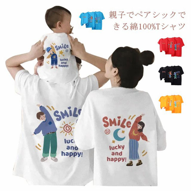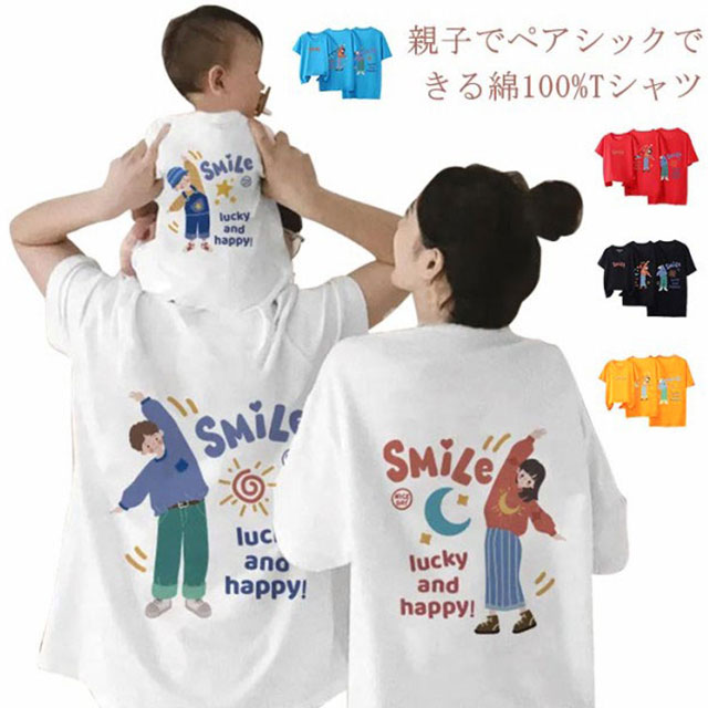 tシャツ 親子 ペアtシャツ 綿100% 親子コーデ 親子ペアルック リンクコーデ 半袖Tシャツ トップス キッズ 子供服 大人 子供 親子 お揃い レディース メンズ 男の子 女の子 ベビー パパ ママ 親子ペア コーデ プリント 家族 親子 姉妹 おそろい 誕生日 プレゼント 送料無料