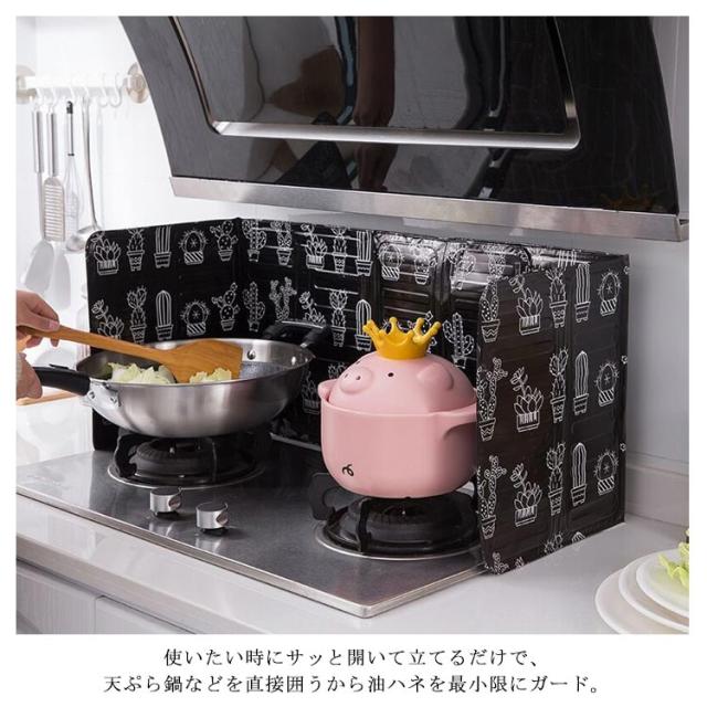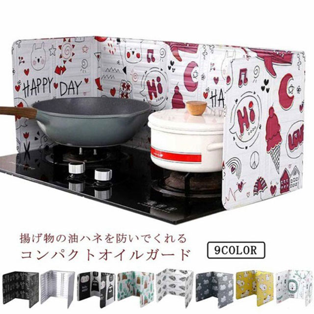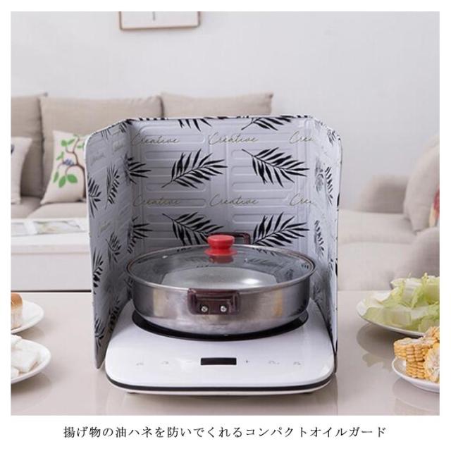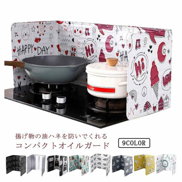 | 揚げ物の油ハネを防いでくれるコンパクトオイルガード 使いたい時にサッと開いて立てるだけで、天ぷら鍋などを直接囲うから油ハネを最小限にガード。 内側は落ちやすい仕様になっているので、油汚れをスポンジと中性洗剤で簡単に洗い落とせます。 レンジのサイズに応じて折り方を変える、また組み合わせ可能で大多数のサイズに対応できます♪(2枚以上組み合わせシール付き) 使わない時はたたんでコンパクトに収納できます。お料理の時だけ取り出して手軽に使うことが出来るのでとっても便利です! | |