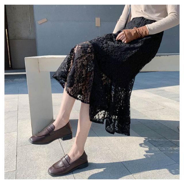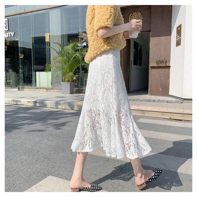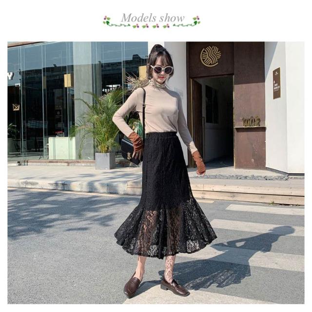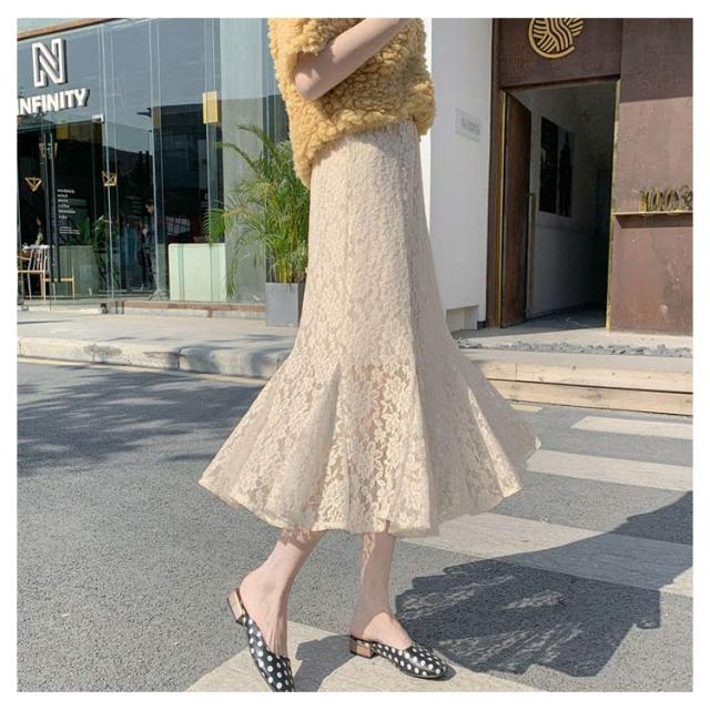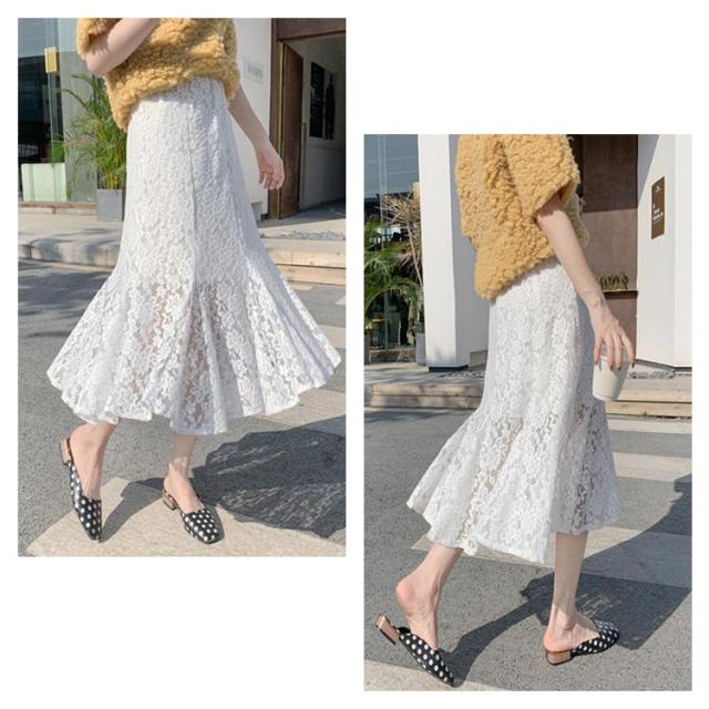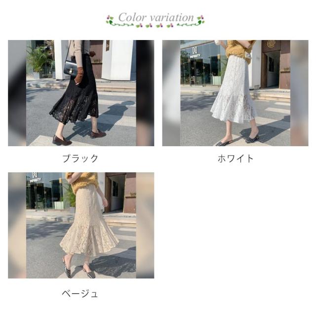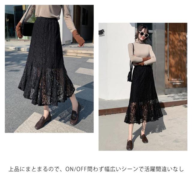 レースマーメイドスカート フラワー 総柄 レーススカート レディース ボトムス ウエストゴム 裏地付き フレアスカート 美シルエット ミモレ丈 膝下 スカラップ チュール きれいめ 大人 春 夏 通勤 通学 フェミニン ボリューム 送料無料