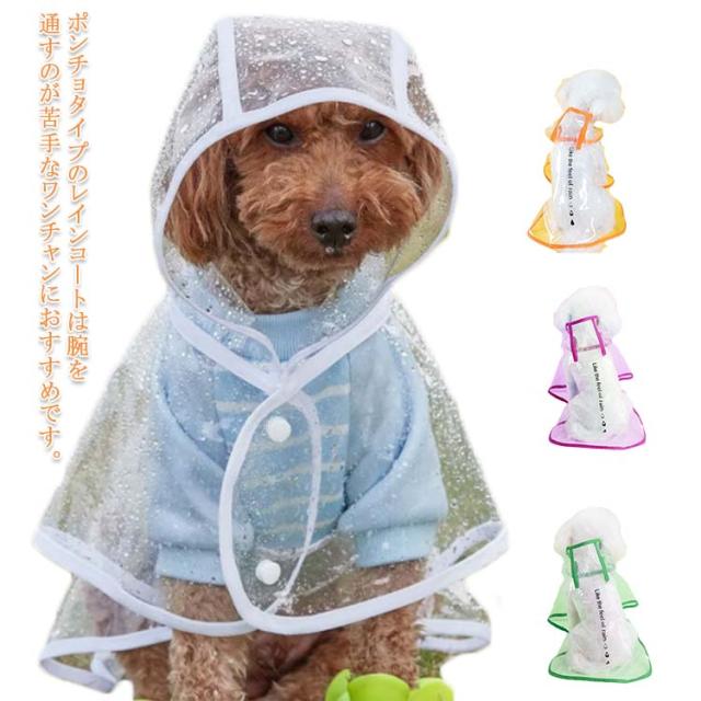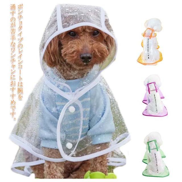 | ポンチョタイプのレインコートは腕を通すのが苦手なワンチャンにおすすめです。 パッと被せてマジックテープを止めるだけで簡単に着用できます。 安全なプラスチック素材のペット雨具。 簡単に装着できる、軽くて、折り畳んで収納できます。 | |