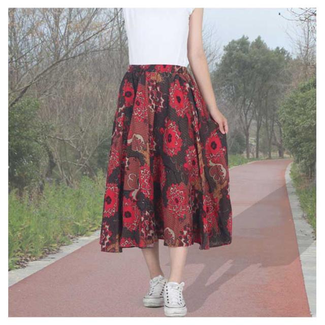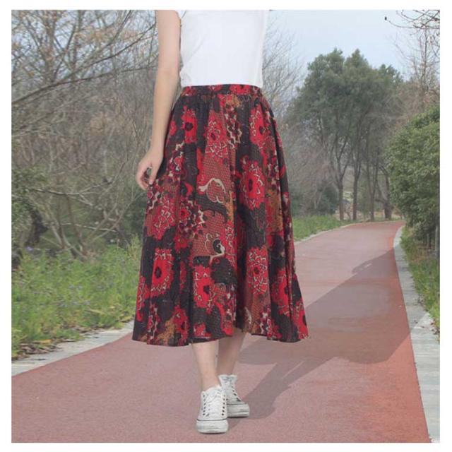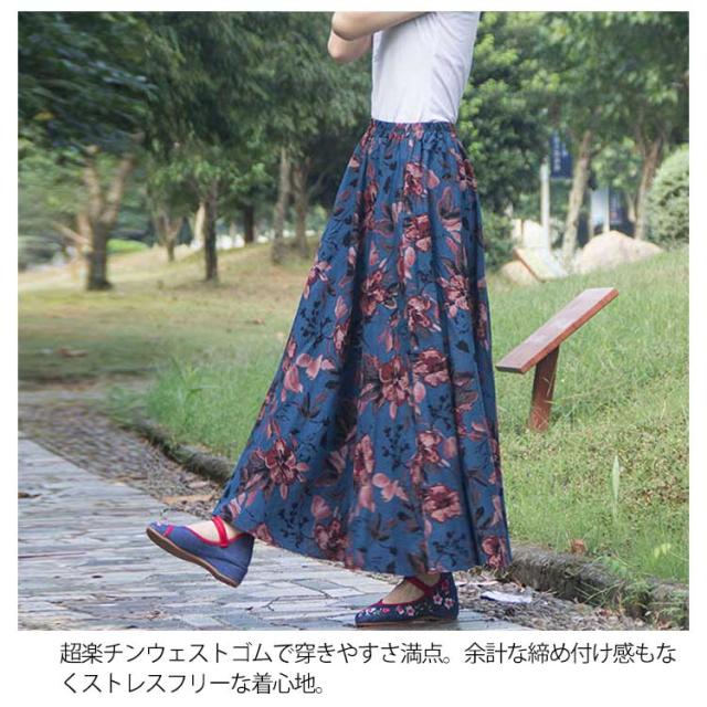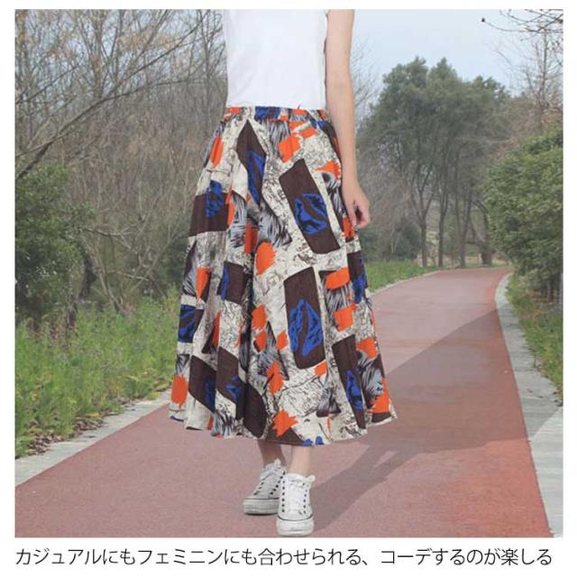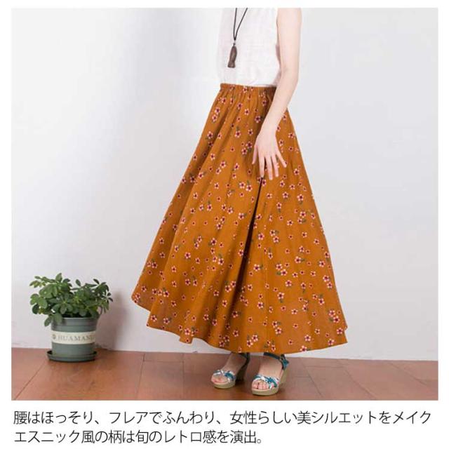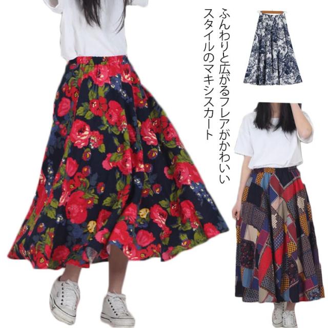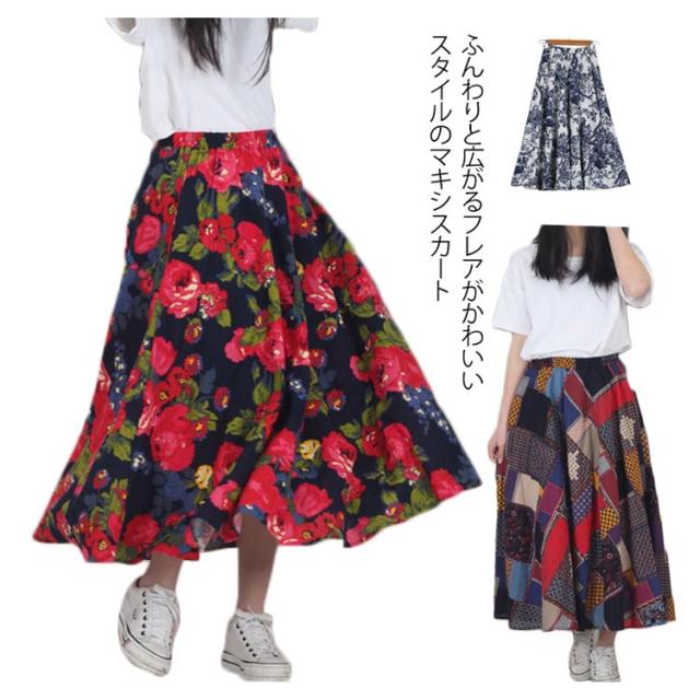 ウエストゴム ロング マキシ ロング丈 マキシスカート トレロスカート 総柄 花柄 ロングスカート トレロスカート リネンスカート フレアスカート エスニック柄 マキシ丈 レディース ボトムス Aライン 膝下