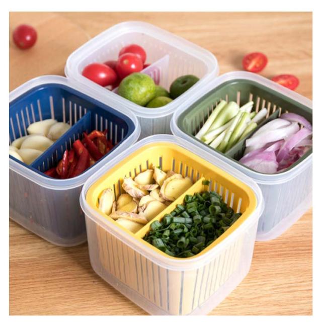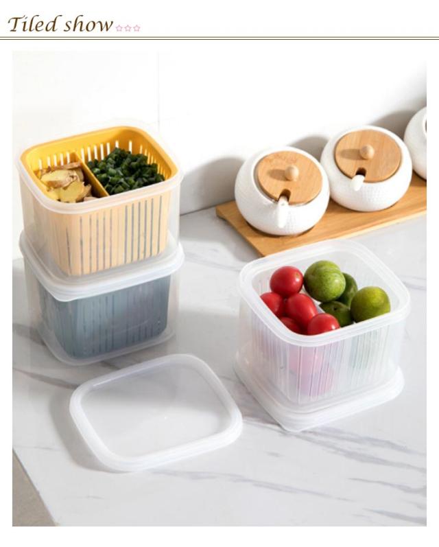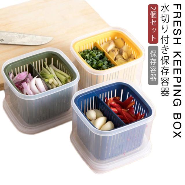 水切り付き 野菜 玉米の粒 仕切り付き 2個セット 二層 野菜 収納ボックス 蓋付き 収納ケース 密封キーパー 収納ボックス 食材 冷蔵庫 排水 密閉ボックス 大蒜 ミニ保存容器 ニンニク 玉ねぎ 保存容器 生姜 唐辛子 収納ボックス 収納ケース 密封 省スペース 食品
