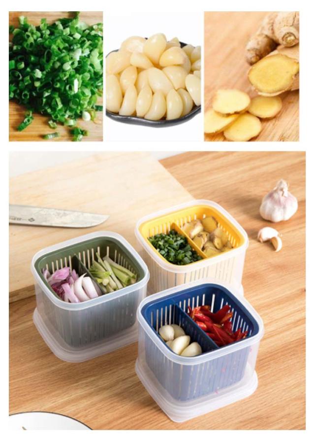 | 【商品名】水切り付き保存容器(仕切り付き) 【素材】 高品質の食品グレードの安全PP素材 【サイズ】サイズ表 【特徴】大蒜、たまねぎ、生姜や玉米の粒・キャベツなどを、洗って水切りしそのまま保存できる、便利な保存容器です。 水切り付き★水を素早く排出し、食品の保存時間を延長することができます。 外層は水を貯蔵できます。食材から落ちる水滴から食材の鮮度を守ってくれます。 蓋も付属しています。漏れにくく、効果的に臭いを防ぎ、食品を乾燥させてオリジナルに保つことができます。 積み重ねて使用できるので、収納場所も無駄なく使うことができます。 | |