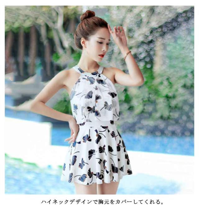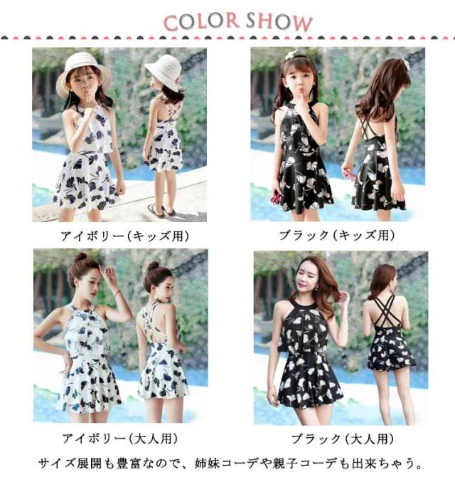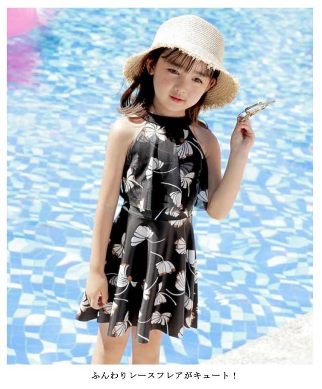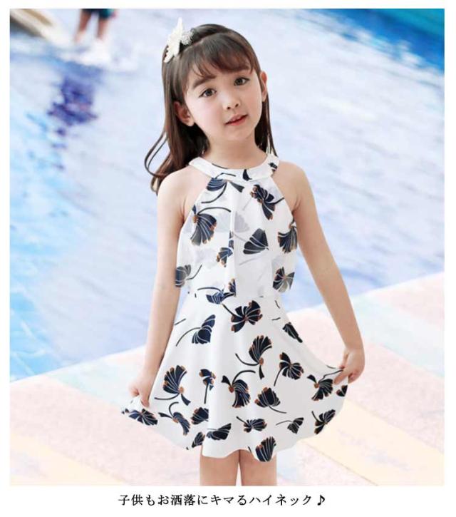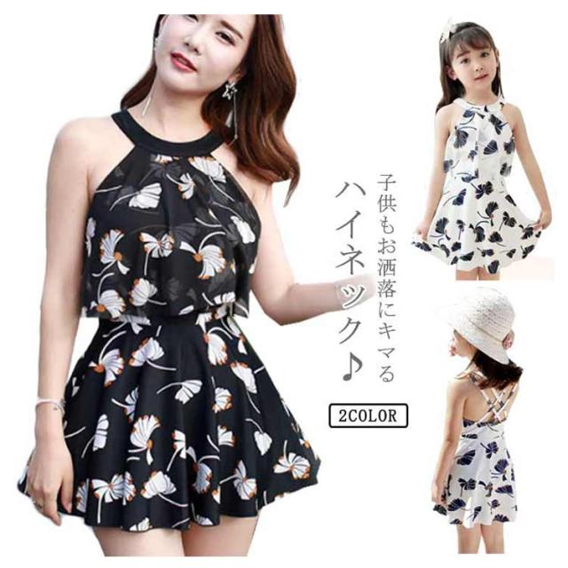 女の子 ワンピース セパレート レディース 送料無料 キッズ 水着 親子 ハイネック ワンピース ジュニア バックシャン フリル プリント 総柄 ガールズ 水遊び プール 海 体型カバー 動きやすい おしゃれ