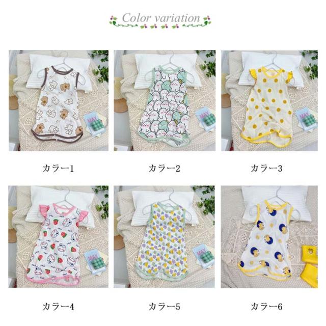 | 吸湿性、保温性に優れた純綿素材を採用、肌触りの良く、敏感肌用も安心。 夏場はしっかりと汗を吸収し、涼しいアイテムです。 裾にボタン付きなので、簡単におむつ替えや肌着の着替えができ、赤ちゃんの肩、おなかまわり、足元まですっぽりと寒気から守ってくれます。 常にサラサラの良い眠り、肌触りが良く、吸湿性がアップ出来た。 かわいい豊富な柄、男の子と女の子通用です。 | |