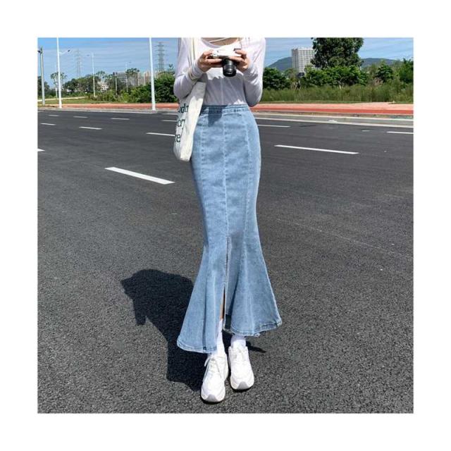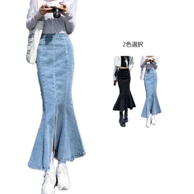 デニムスカート マーメイドスカート レディース 春夏 秋 Aライン フリルスカート ペンシルスカート デニム ロング丈 ハイウエスト フリルスカート ボトムス 無地 シンプル カジュアル おしゃれ 送料無料
