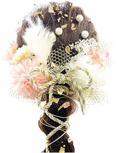 JZOONドライフラワー 髪飾り ダリア 造花飾り紐 赤 ヘアアクセサリー 成人式 ゴールド 水引 ヘッドパーツ 振