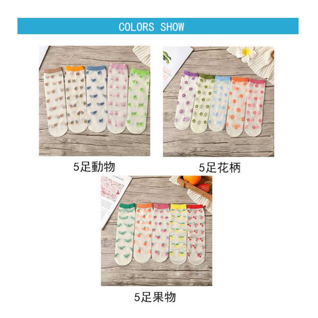 靴下 キッズ 女の子 夏用 ハイソックス 5足セット 薄手 ニーハイソックス ソックス 子供靴下 コットン 通気性 おしゃれ かわいい 通園 通学 ファッション 果物柄 フラワー柄 動物柄 送料無料