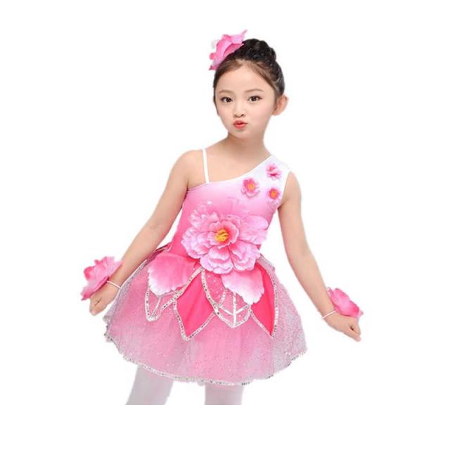 キッズ 夏用 フラワーダンス衣装 おしゃれワンピース チュチュ ワンピース ダンス 衣装 ダンス 衣装 ベビー服 ステージ衣装 チュールワンピース かわいい 女の子 子供服 送料無料