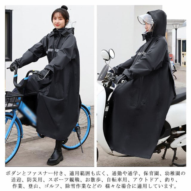 | 男女兼用・ロング丈レインコート 日常での使いやすさを重視し、街歩きや自転車運転で便利な機能が満載の快適・スタイリッシュなレインコートです。 急な雨の時やちょっとしたお出掛けの時、レインスーツでズボンまで履くのは面倒だ、という方もコートタイプなら普段着に羽織るだけです。 リュック対応、雨の日の自転車で、機能もおしゃれも妥協したくない人のための、高い機能性とデザイン性を両立させたレインコートです。 通気性がよく柔軟性があり動きやすい素材です。 | |