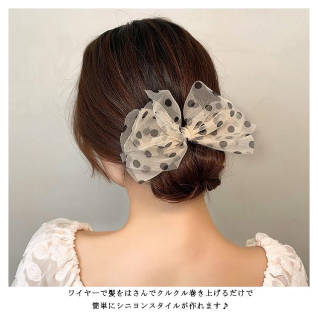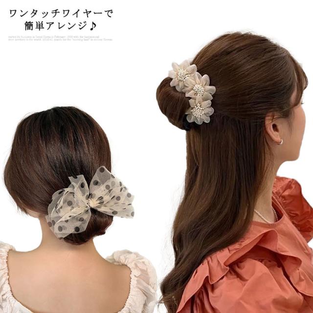 送料無料 シニヨンワイヤー お団子 韓国 トッド柄 水玉 くるくる ビックリボン ヘアアクセサリー レディース おだんご 簡単 アップスタイル ヘアアレンジ 髪飾り