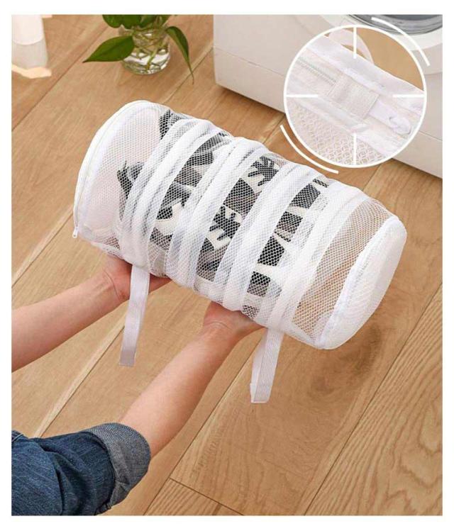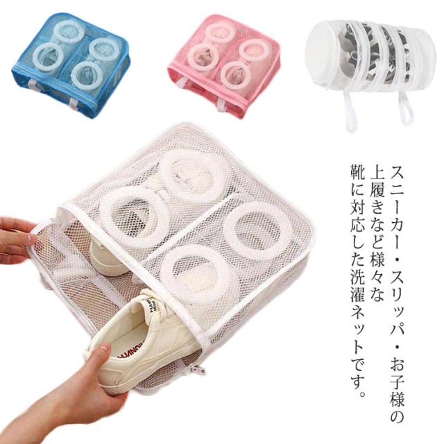 洗濯ネット 靴 1個入 シューズ 洗濯機用 洗い くつ用 靴洗い スニーカー 上履き 運動靴 スリッパ シューズ洗濯ネット 靴ネット 左右の仕切り 円筒型 メッシュ 便利グッズ 時間短縮 送料無料