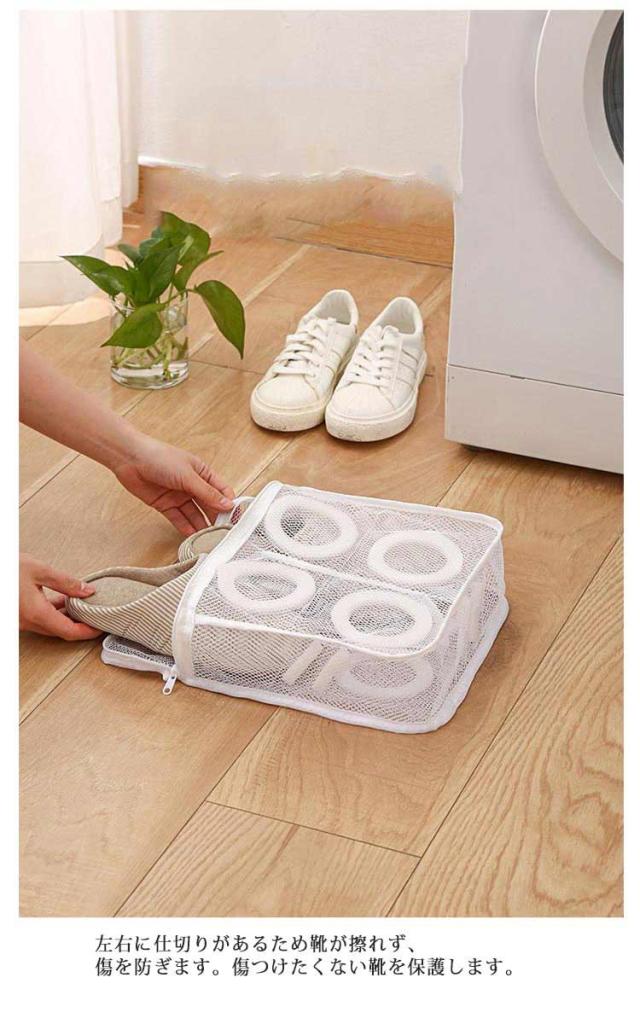 | スニーカー・スリッパ・お子様の上履きなど様々な靴に対応した洗濯ネットです。 ネットに入れて靴を洗濯機に入れるだけでお手持ちの靴を綺麗にできます。 洗濯ネットを使うメリットは、靴や洗濯機を傷めないことと、洗濯中の音を最小限にしてくれることです。 出し入れ簡単!ファスナー式。 左右に仕切りがあるため靴が擦れず、傷を防ぎます。傷つけたくない靴を保護します。 ネット上部には物干しざおに吊るすことが出来るストラップを搭載!洗濯後そのまま干すことができます。 | |
