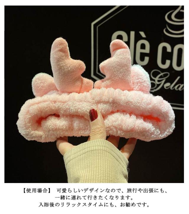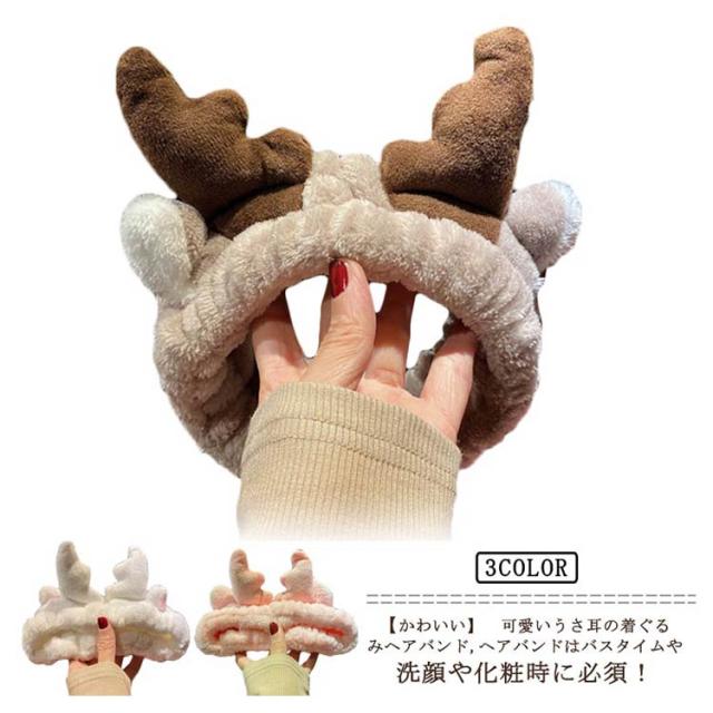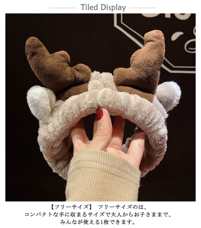 送料無料 トナカイ ヘアバンド アントラーズ 可愛いヘアバンド 耳付き 洗顔用 吸水速乾 花柄 レディース ヘアターバン 洗顔 スキンケア メイク お風呂 お風呂上がり バスタイム 吸水 ギフト